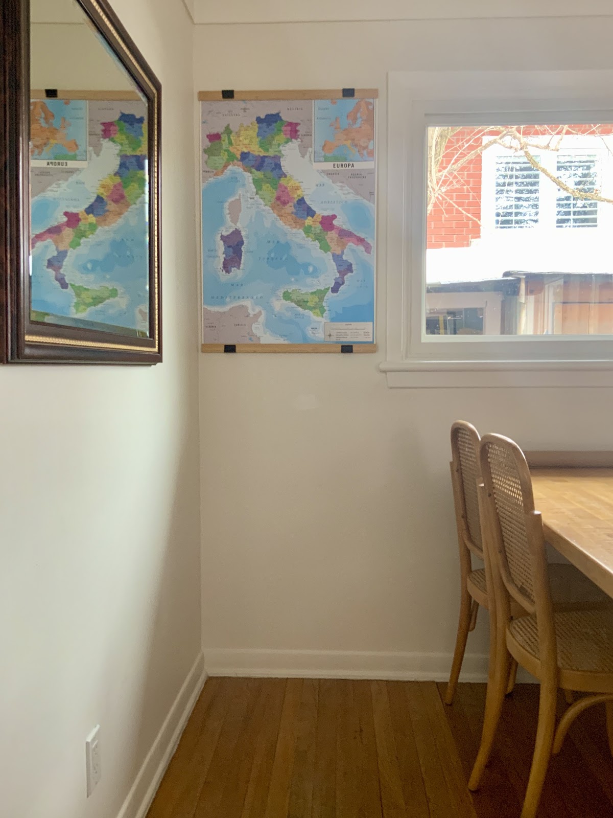 Zita put that new map of far away Italy on the wall in the dining room.