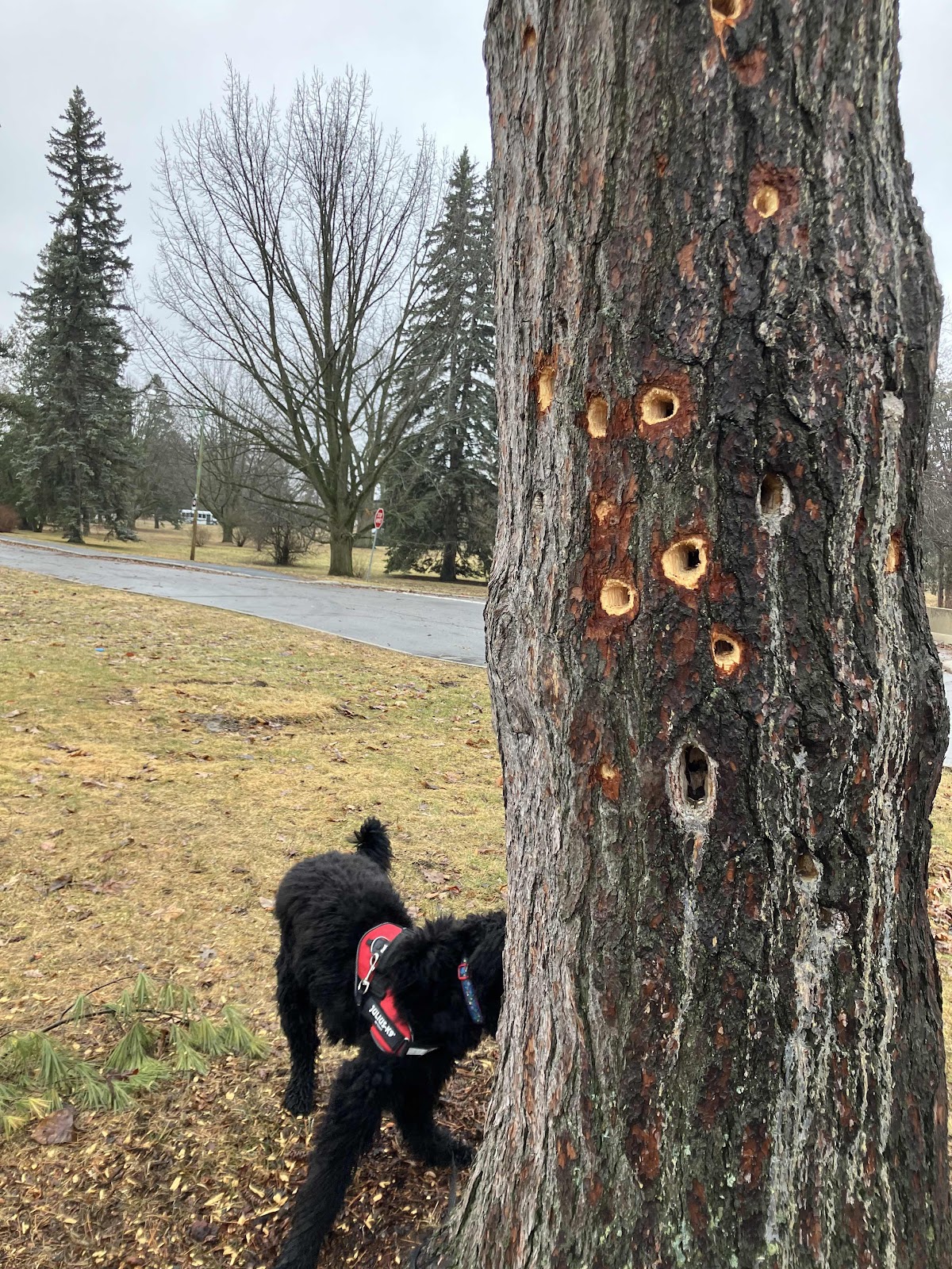 One of those very noisy birds made those holes.