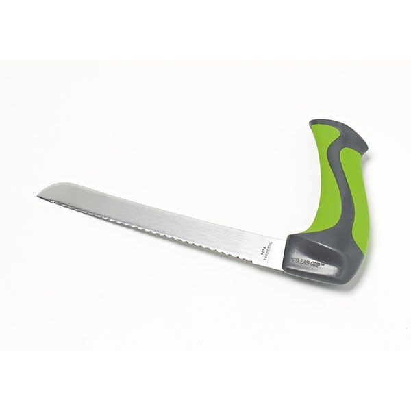 He used his brand new, for sore shoulders, cutting bread knife.