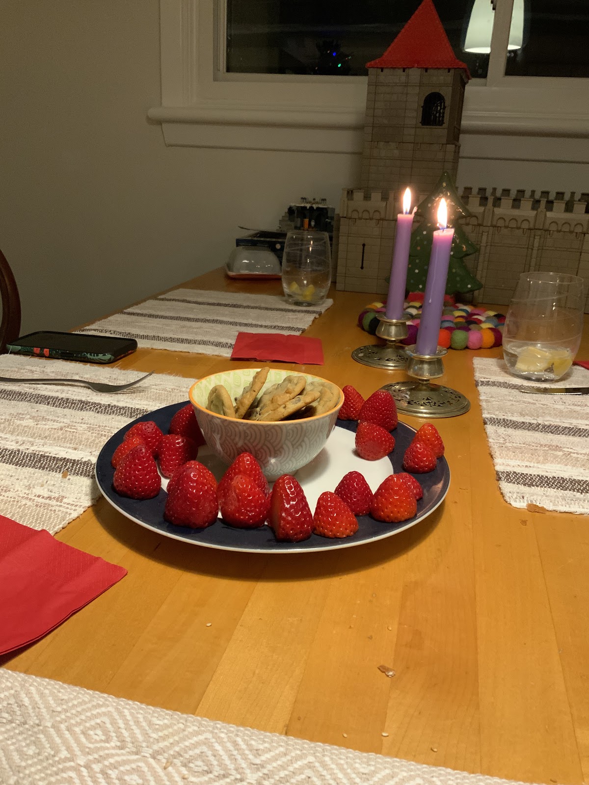 So we had an altogether dinner, with all our used food and we had strawberries and Niamh’s cookies for dessert.